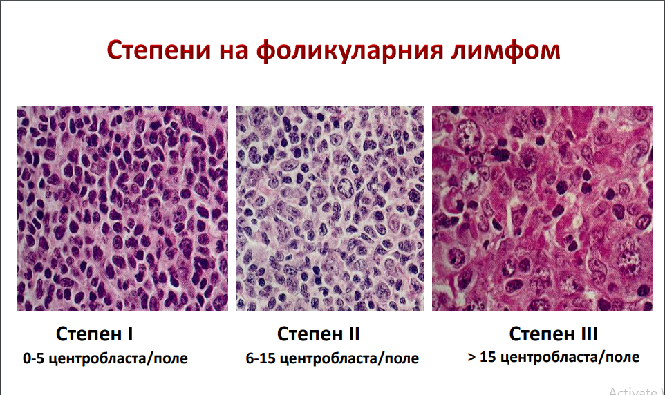 Фоликуралният лимфом започва и се развива в герминативният център на лимфният фоликул. Туморните клетки произхождат от Б- лимфоцитите. Съставлява 25 % от всички нехочкинови лимфоми при възрастните. Туморната тъкан се състои от центроцити и центробласти. В зависимост от процентното съотношение между центроцити и центробласти – 3 степени: 1,2,3степен. Най-благоприятна- 1 степен бавен ход, пациентът може само да се наблюдава – Watch and Wait.