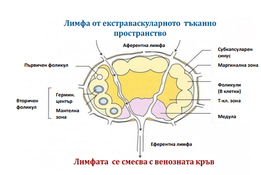 - Лимфни възли, слезка, лимфна тъкан асоцирана със стомашно- чревният тракт, с трахео- бронхиалната система и др.