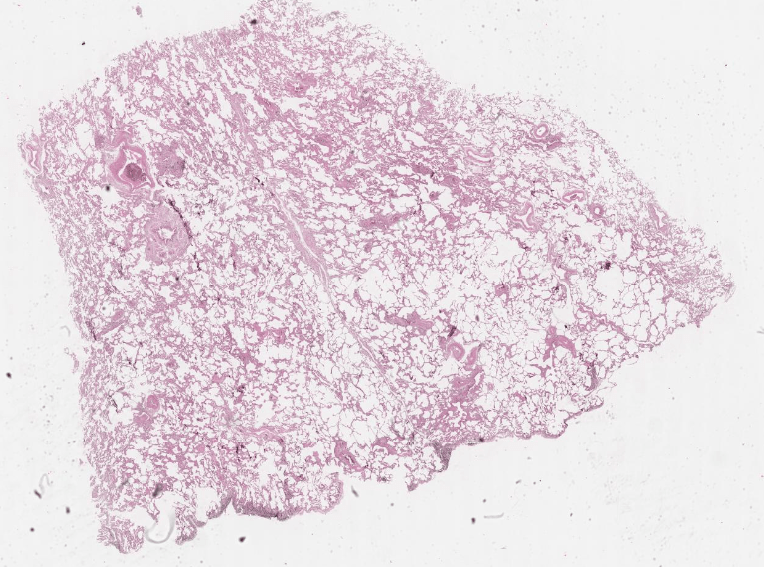 В малките алвеоли има чашковидни клетки, произвеждащи слузна хиперсекреция и облитерация на малките бронхиоли, в резултат на което въздухът влиза в алвеолите, но не може да излезе.